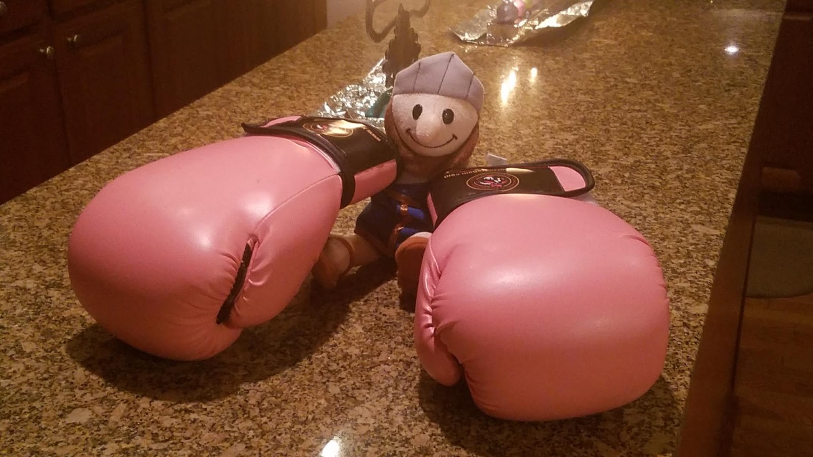 Well Isaac is back....Happy Hanukkah. He decided to wait until the 2nd night to make his 1st appearance. The kickboxing gloves looked like a lot of fun. Hope he enjoyed them. Can't wait to see what kind of trouble he gets into tonight.